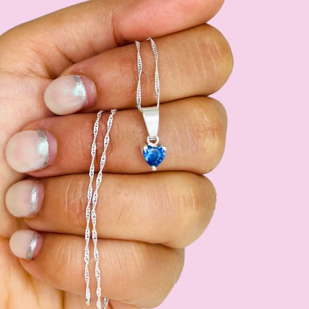 Conjunto Cadena con Corazon Azul Plata 925