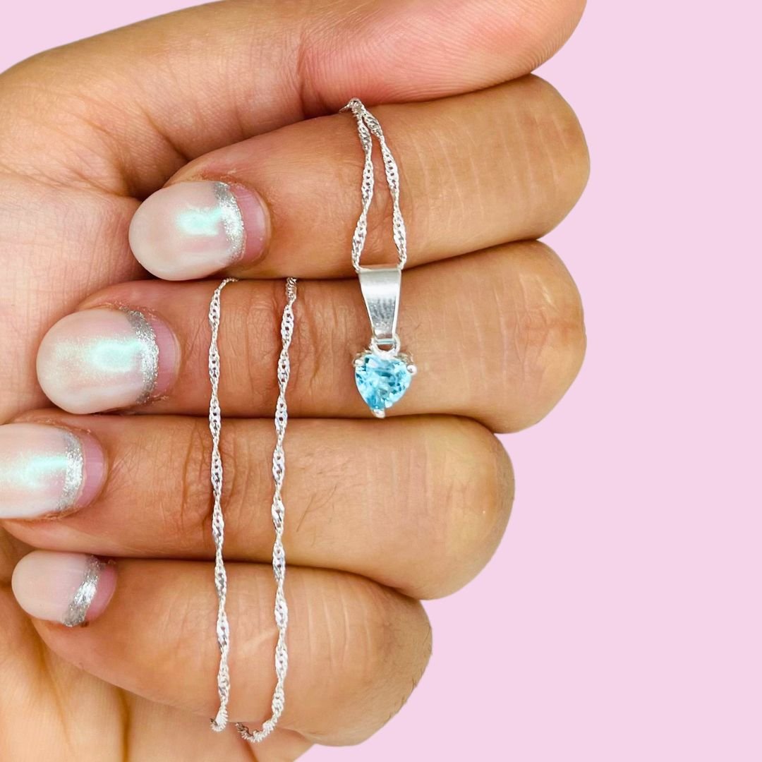 Artículo: KIT 324-4Conjunto Cadena con Corazon Celeste Plata 925