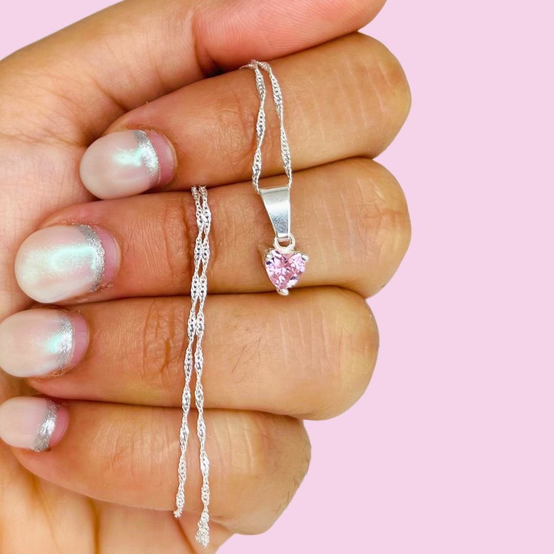 Artículo: KIT 324-8Conjunto Cadena con Corazon Rosa Plata 925