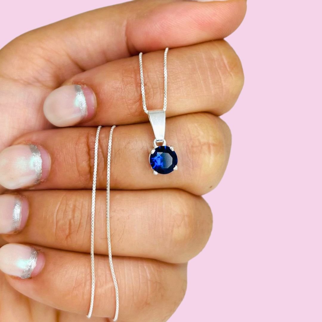 Conjunto Cadena Dije con Mini Cubic Azul Plata 925