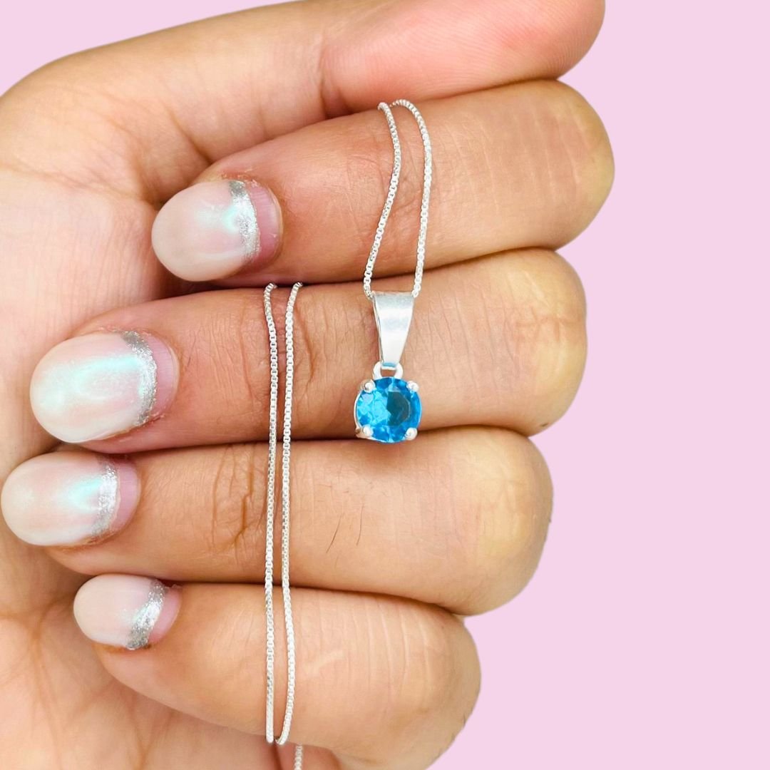 Conjunto Cadena Dije con Mini Cubic Celeste Plata 925