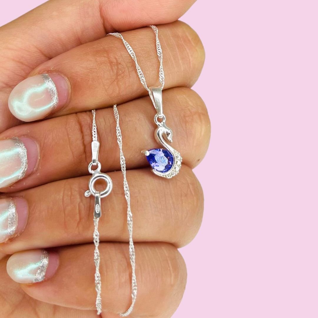 Artículo: KIT 327-4Conjunto Cadena con dije Cisne con piedra Amatista Plata 925
