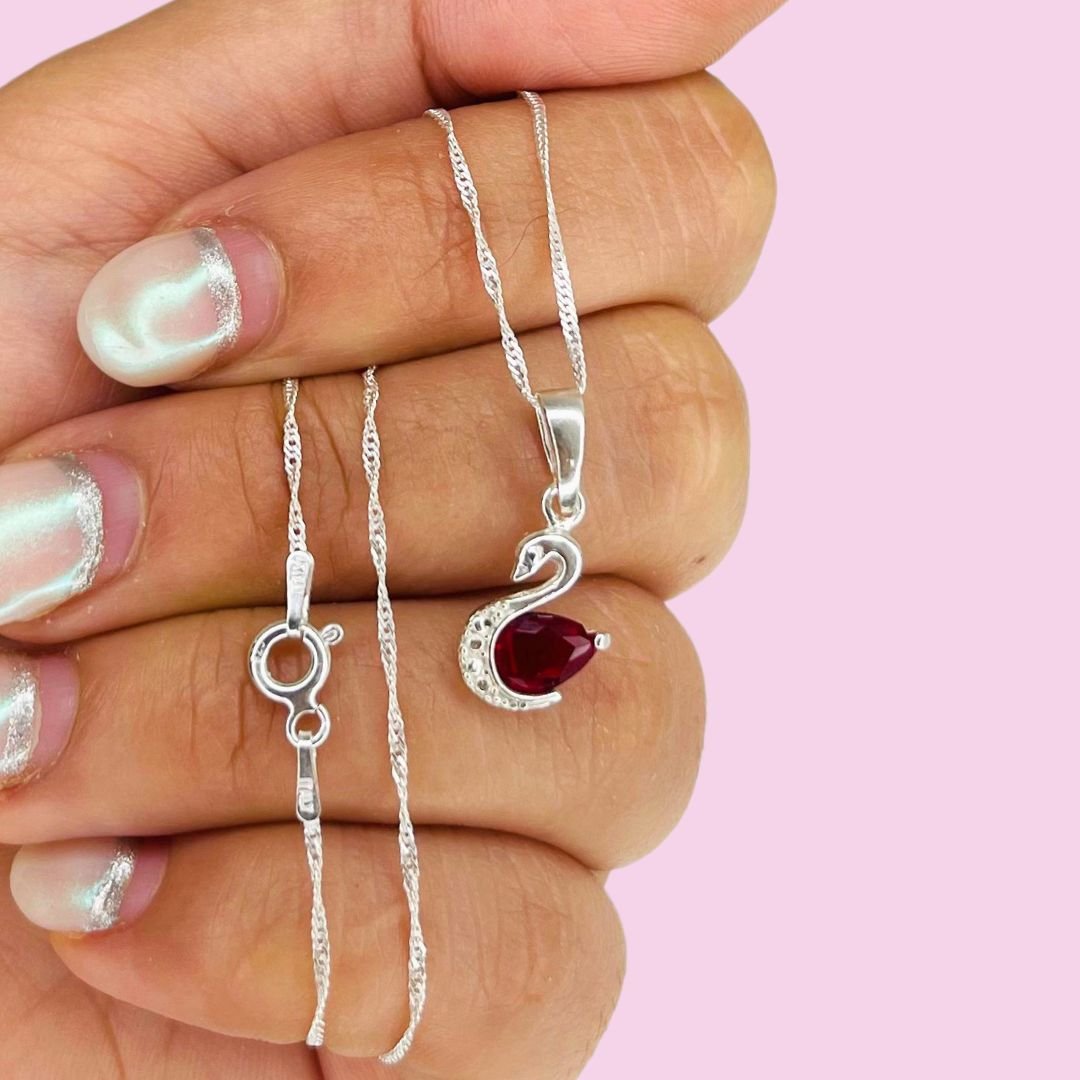Conjunto Cadena con dije Cisne con piedra Rubi Plata 925