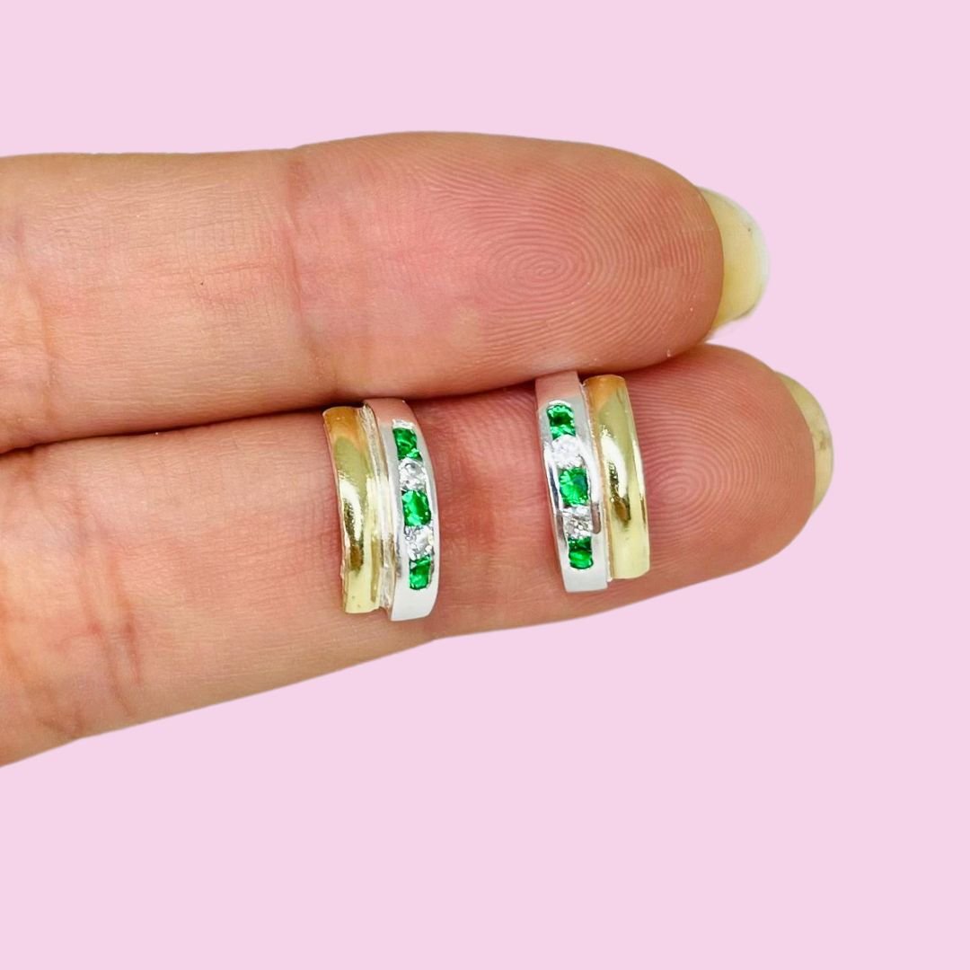 Aros Media Caña Sin Fin Blanco-Verde Plata y Oro