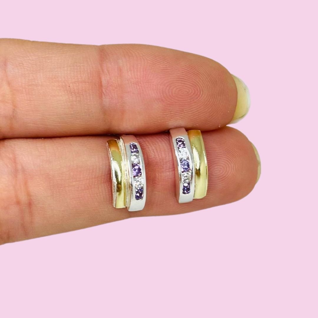 Aros Media Caña Sin Fin Blanco-Amatista Plata y Oro