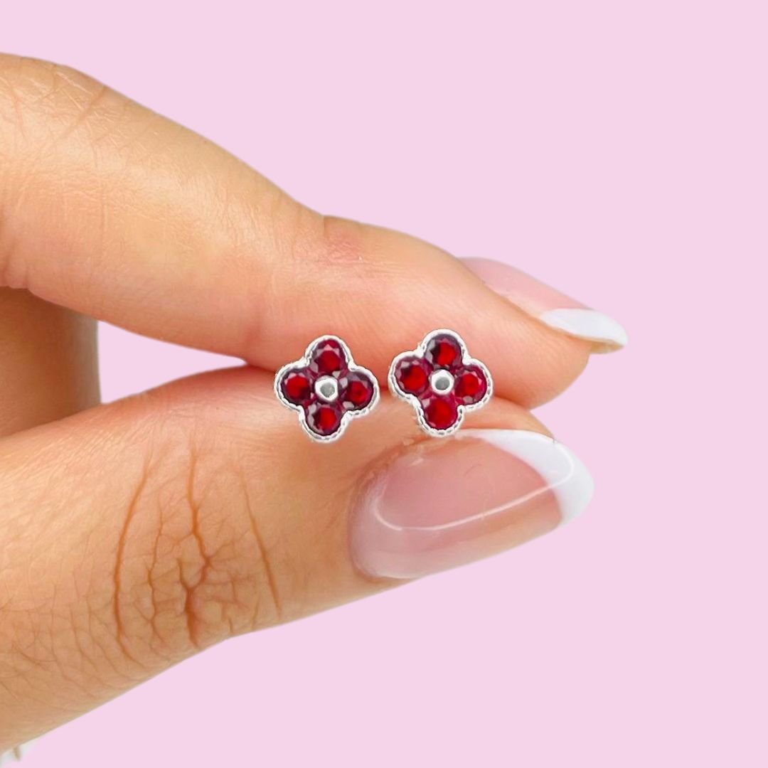 Artículo: AR 593-6Aros Trebol con cubic Rojo Plata 925