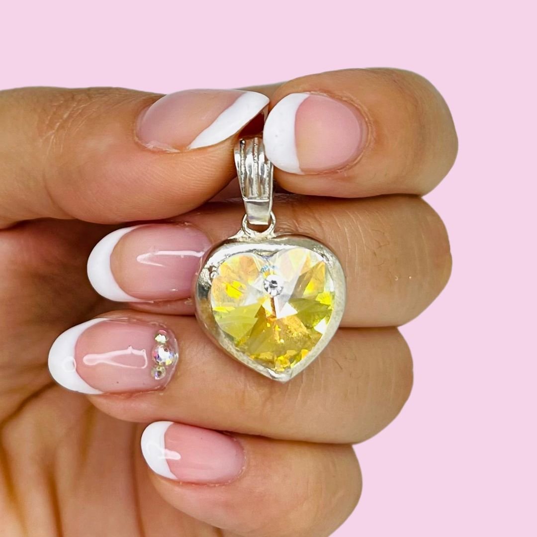 Dije Corazon Con Swarovski Aurora Boreal Plata 925