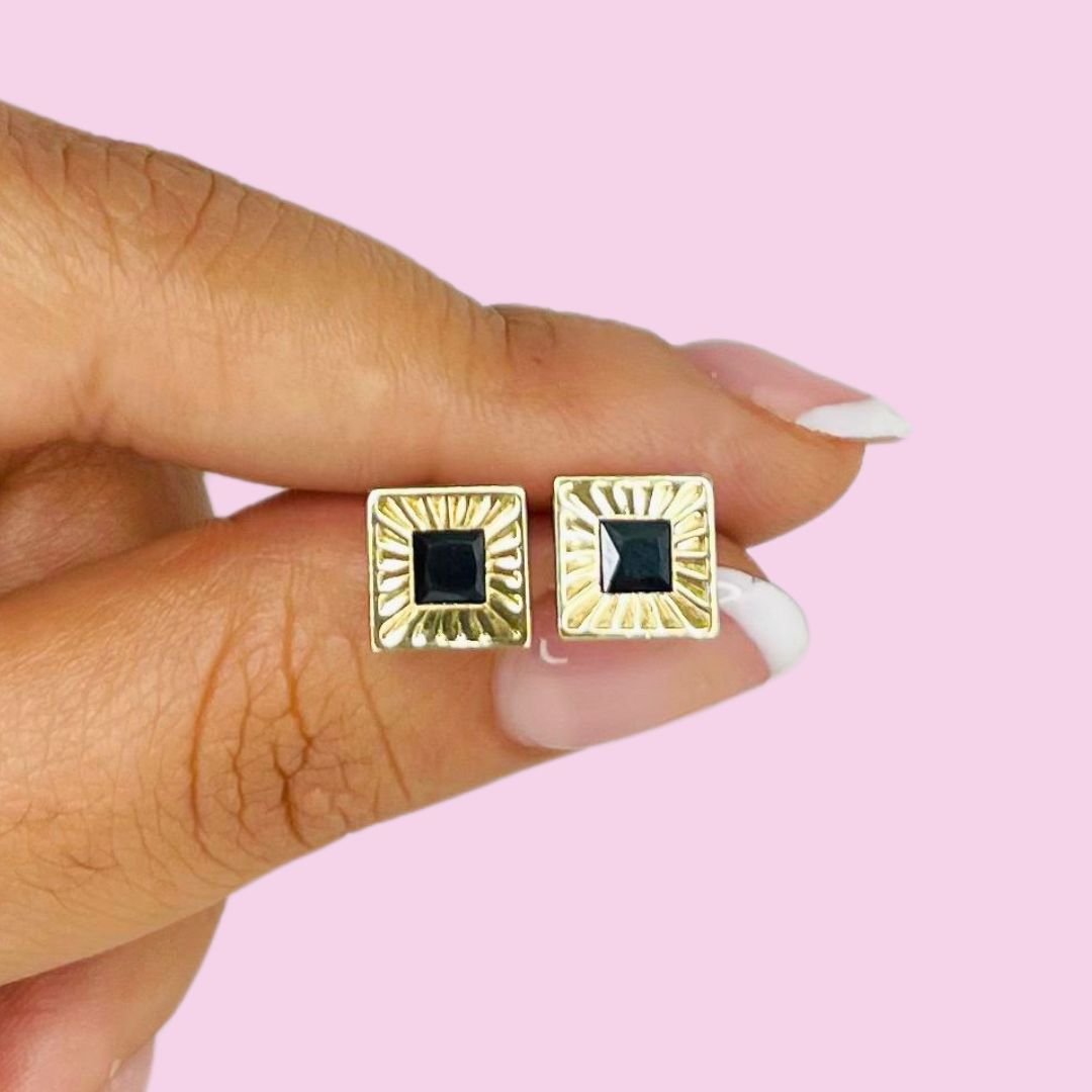 Artículo: AR 003-2Aros Cuadrado Negro Plata 925 y Oro