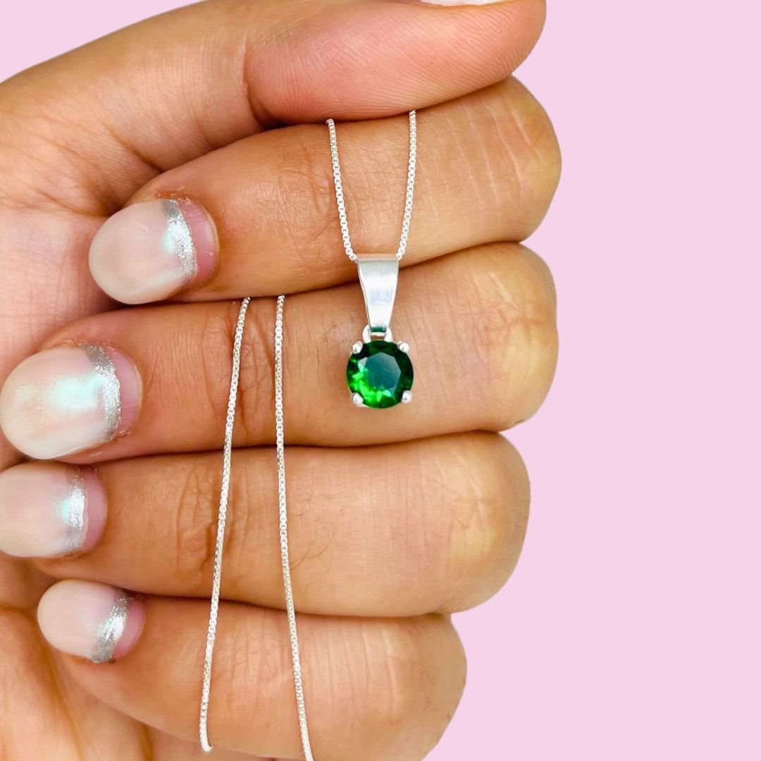 Conjunto Cadena Dije con Mini Cubic Esmeralda Plata 925