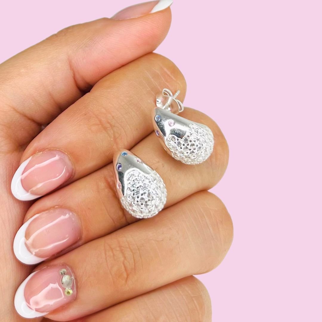 Aros Chunky Cubic Blanco-Multicolor Plata Italiana