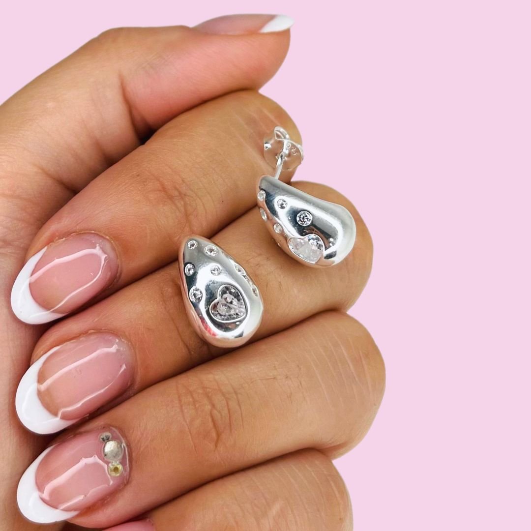 Aros Chunky Cubic Corazon Blanco Plata Italiana