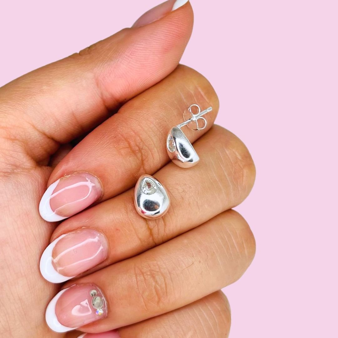 Aros Chunky Mini Cubic Gota Blanco Plata Italiana