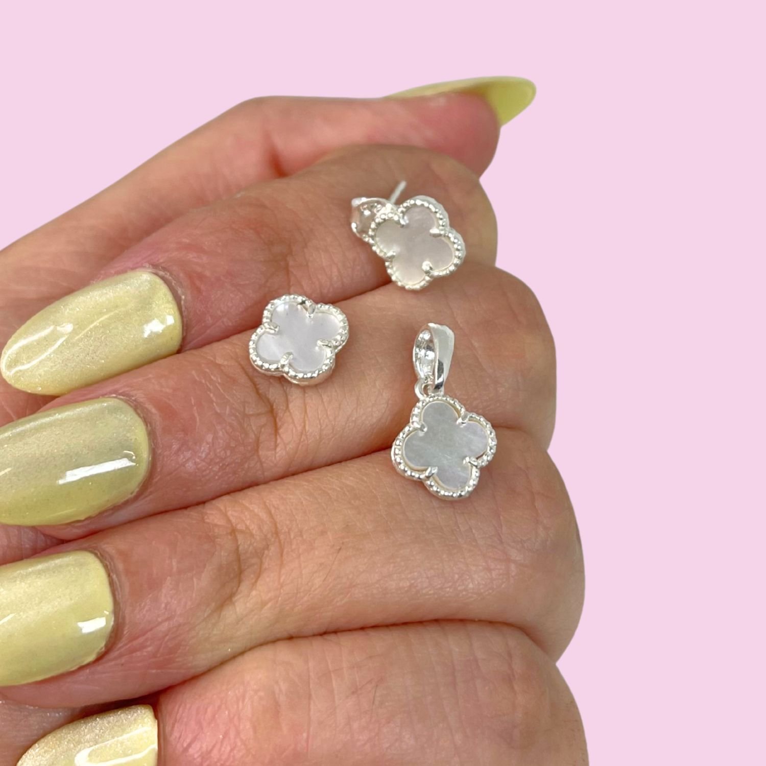 Conjunto dije y aros Van Cleef Nacar Plata 925