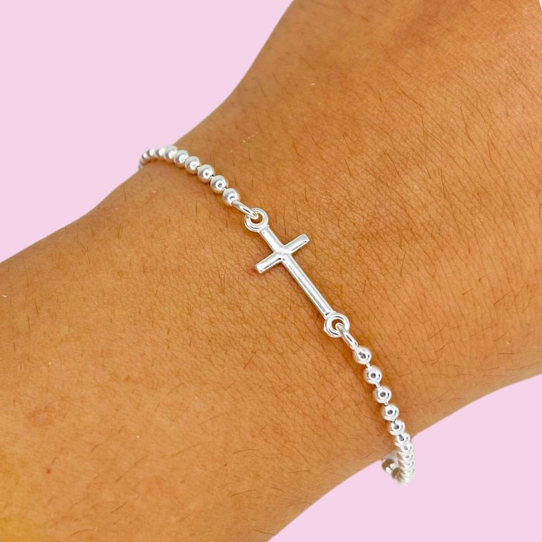 Artículo: PS 393Pulsera Bolita con Cruz Plata Italiana
