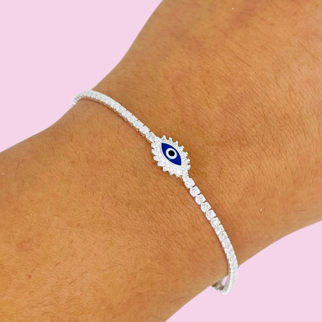 Pulsera Luxury Ojito con cubic y esmaltado Plata Italiana