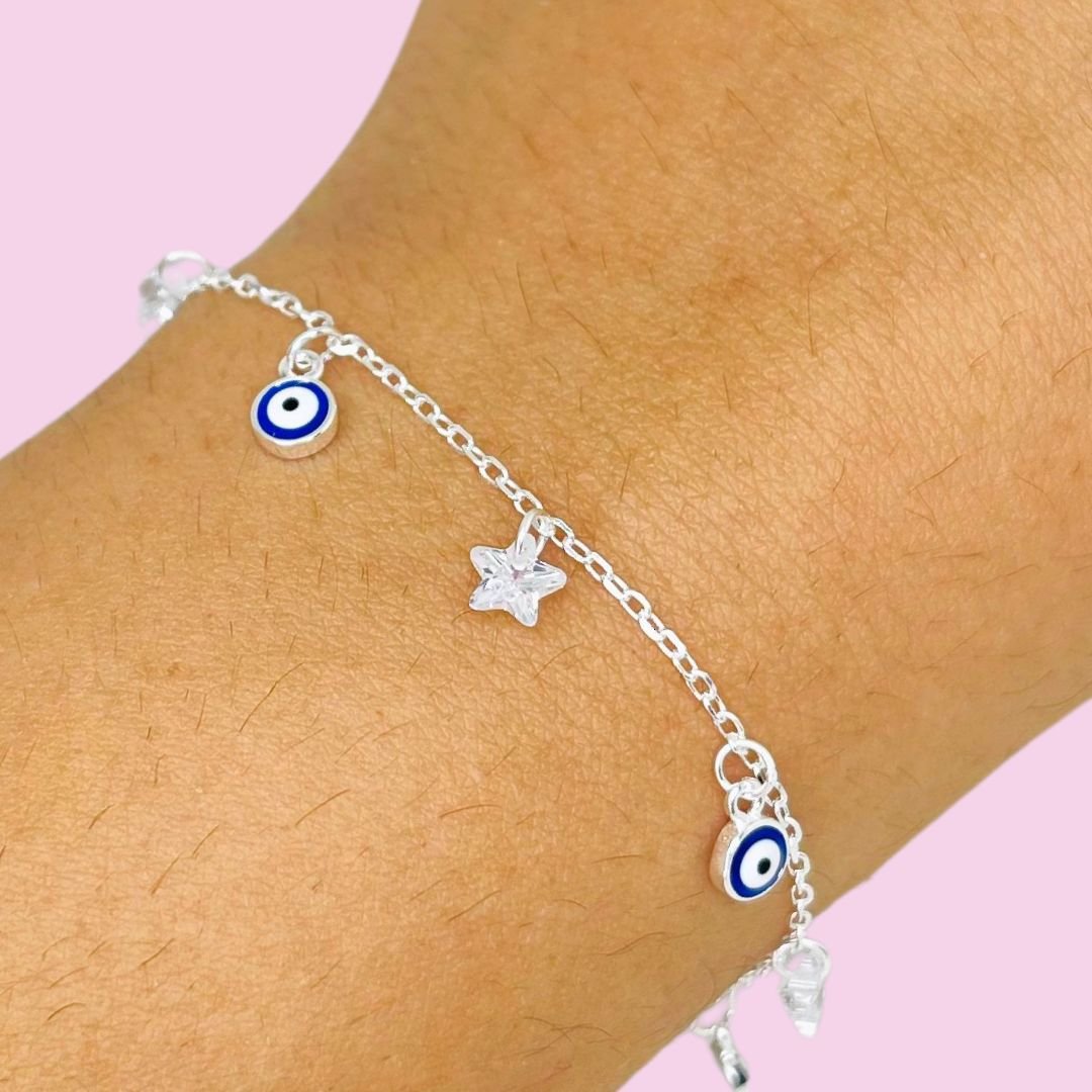 Artículo: PS 399-4 Pulsera con ojo protector esmaltado y cubic estrella en plata italiana.