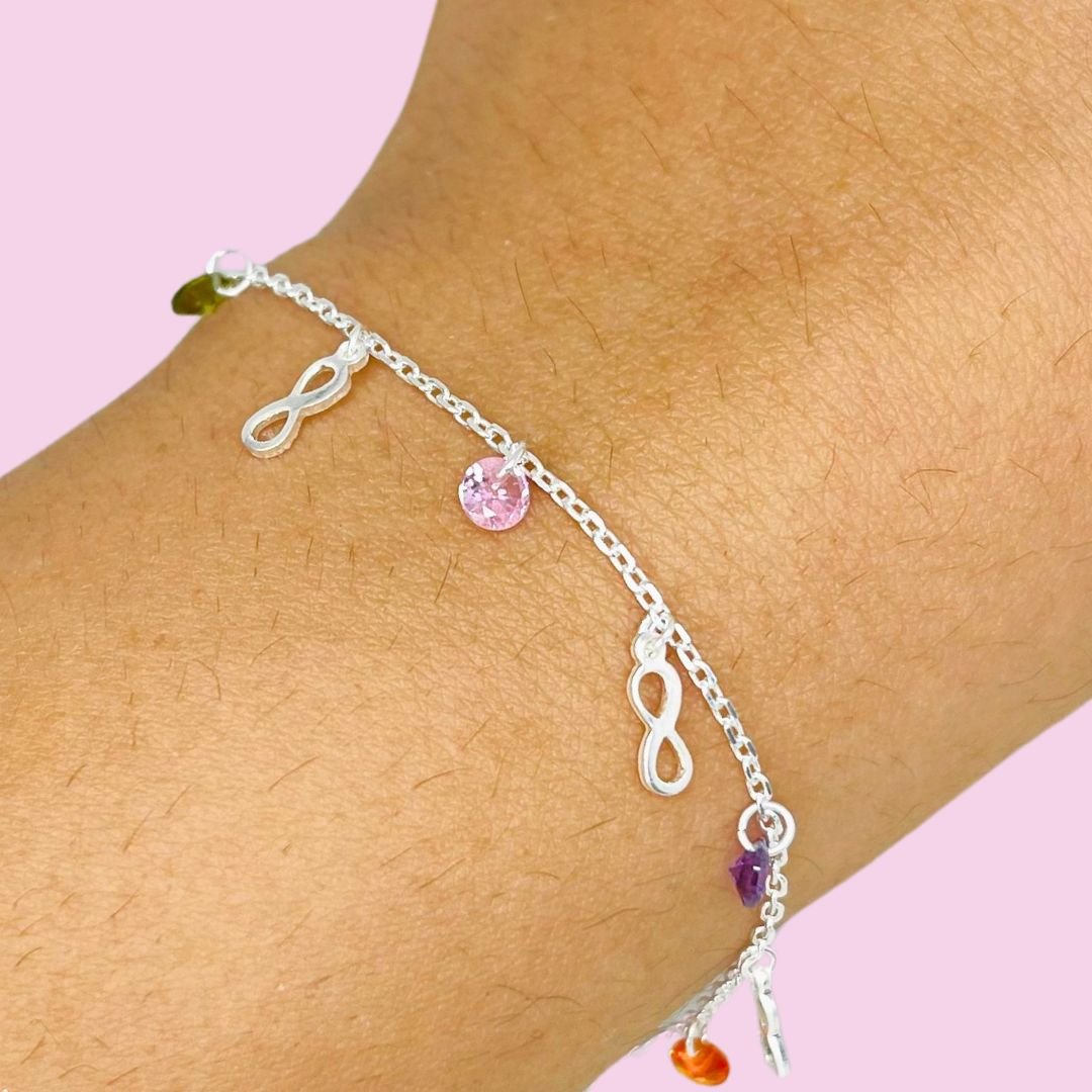 Pulsera Infinito con cubic Multicolor Plata Italiana