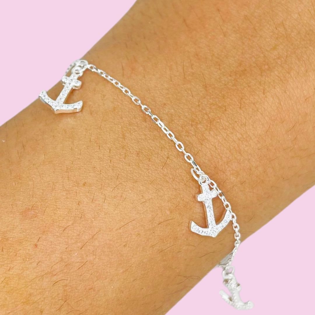 Pulsera Ancla con cubic Blanco Plata Italiana