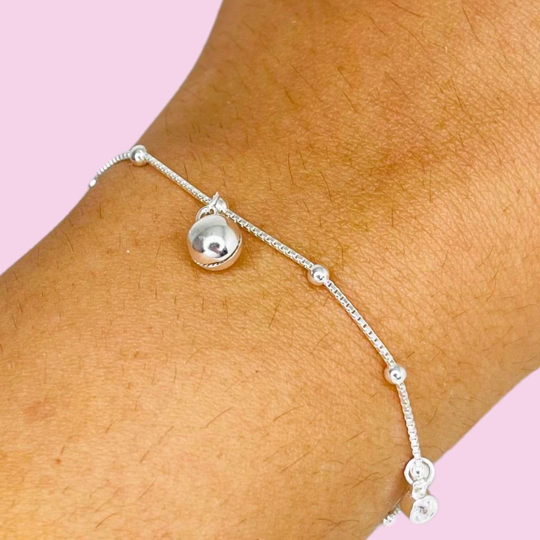 Artículo: PS 405Pulsera Bolitas y Cascabel Plata Italiana