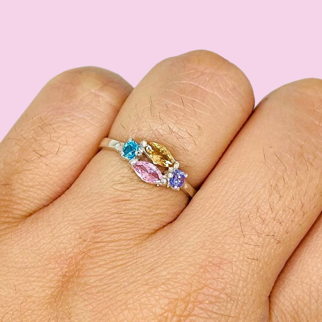 Anillo Fino de 4 piedras Multicolor de Plata 925