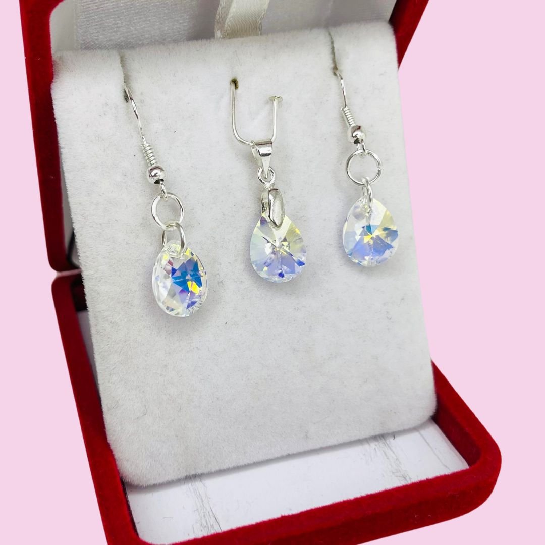 Conjunto dije y aros Swarowski Gota Aurora Boreal Plata 925
