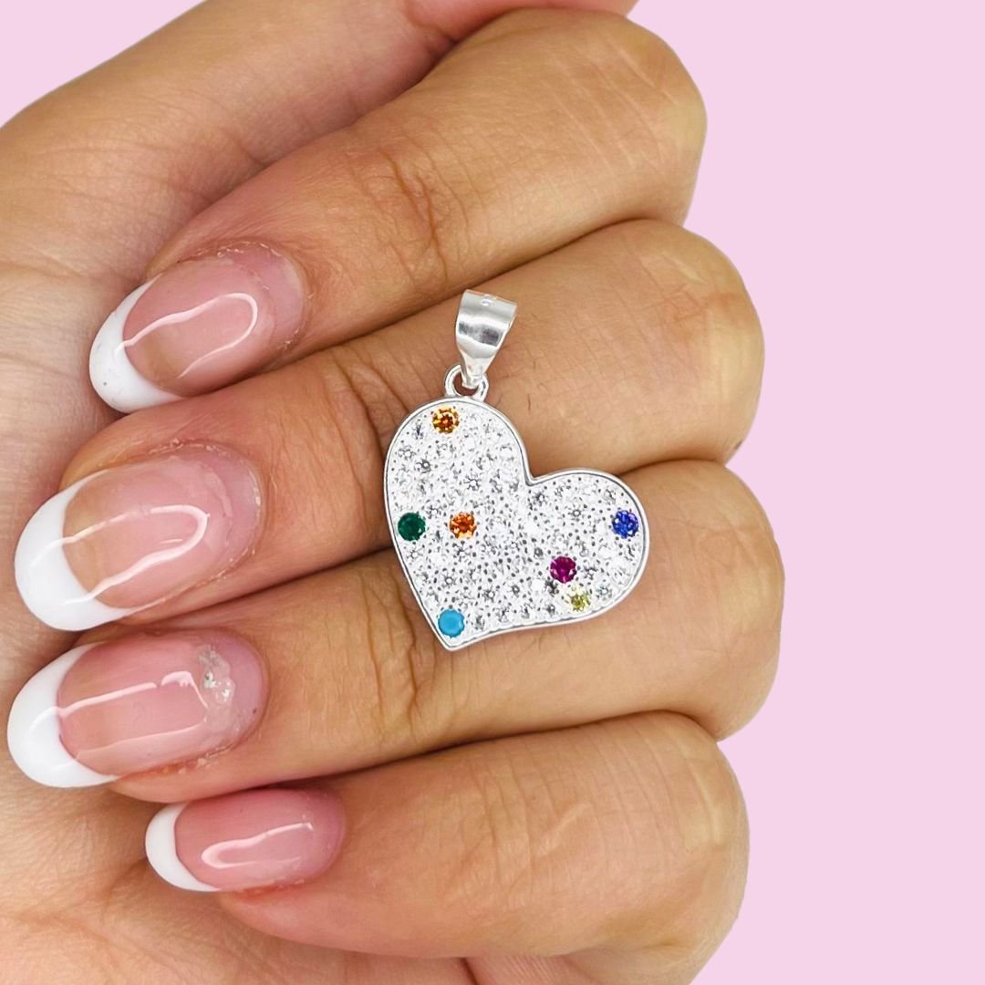 Dije Corazon con cubic blanco y multicolor Plata Italiana