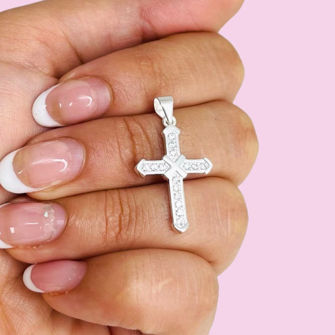 Artículo: D 812Dije Cruz con cubic y nudo central Plata Italiana