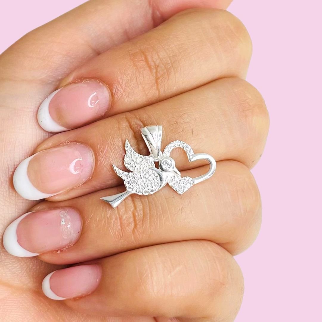 Dije Colibri con corazones en micropave Plata Italiana