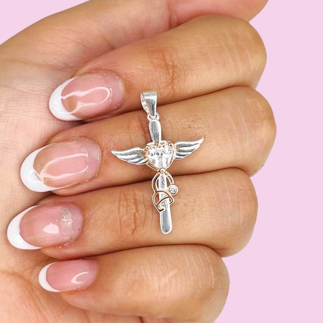 Artículo: D 817Dije Cruz con alas y estetoscopio Plata Italiana
