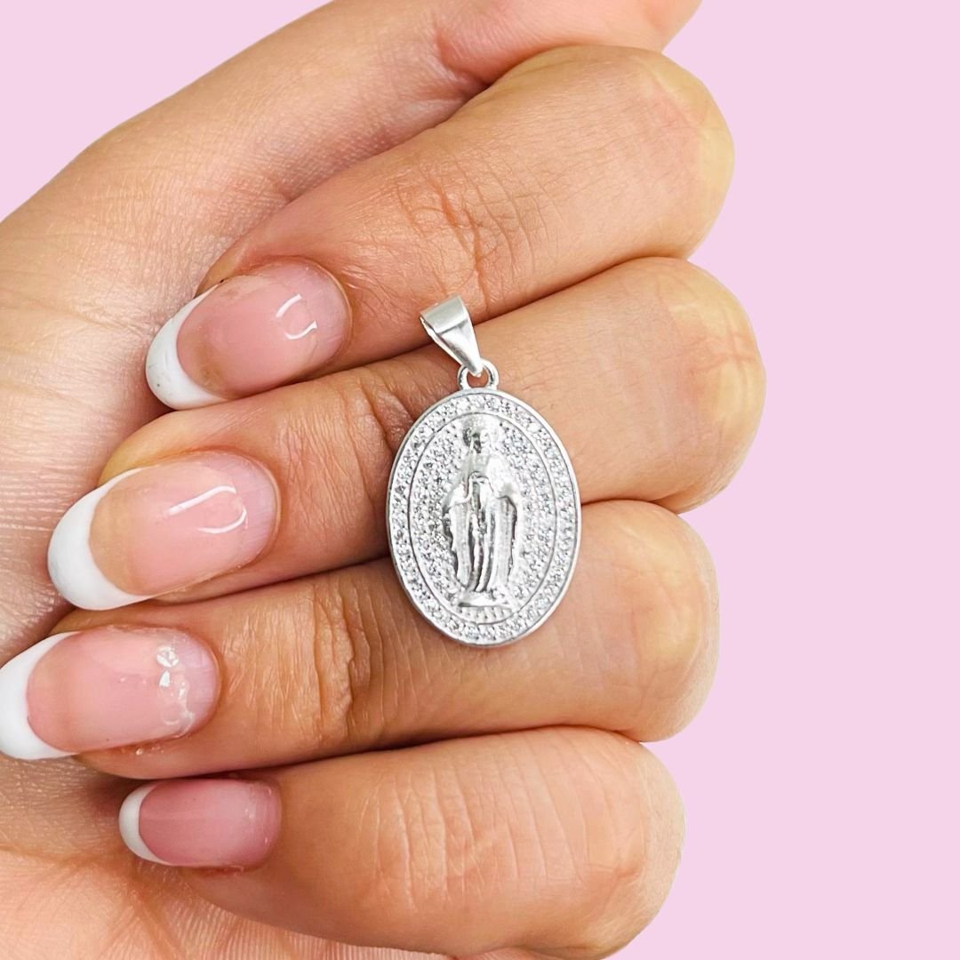 Dije Virgen Milagrosa Micropave 25mm Plata Italiana