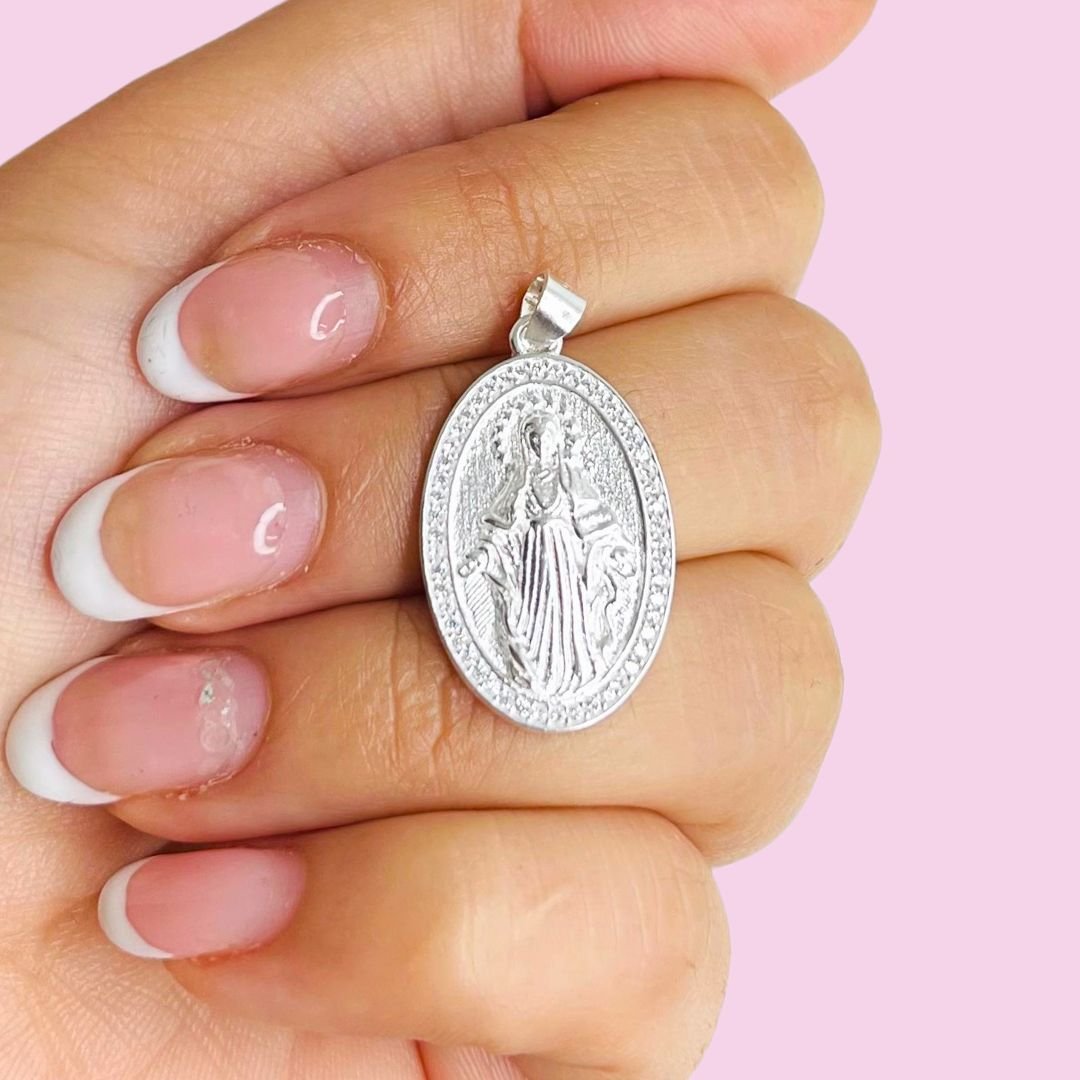 Dije Virgen Milagrosa Micropave 31mm Plata Italiana