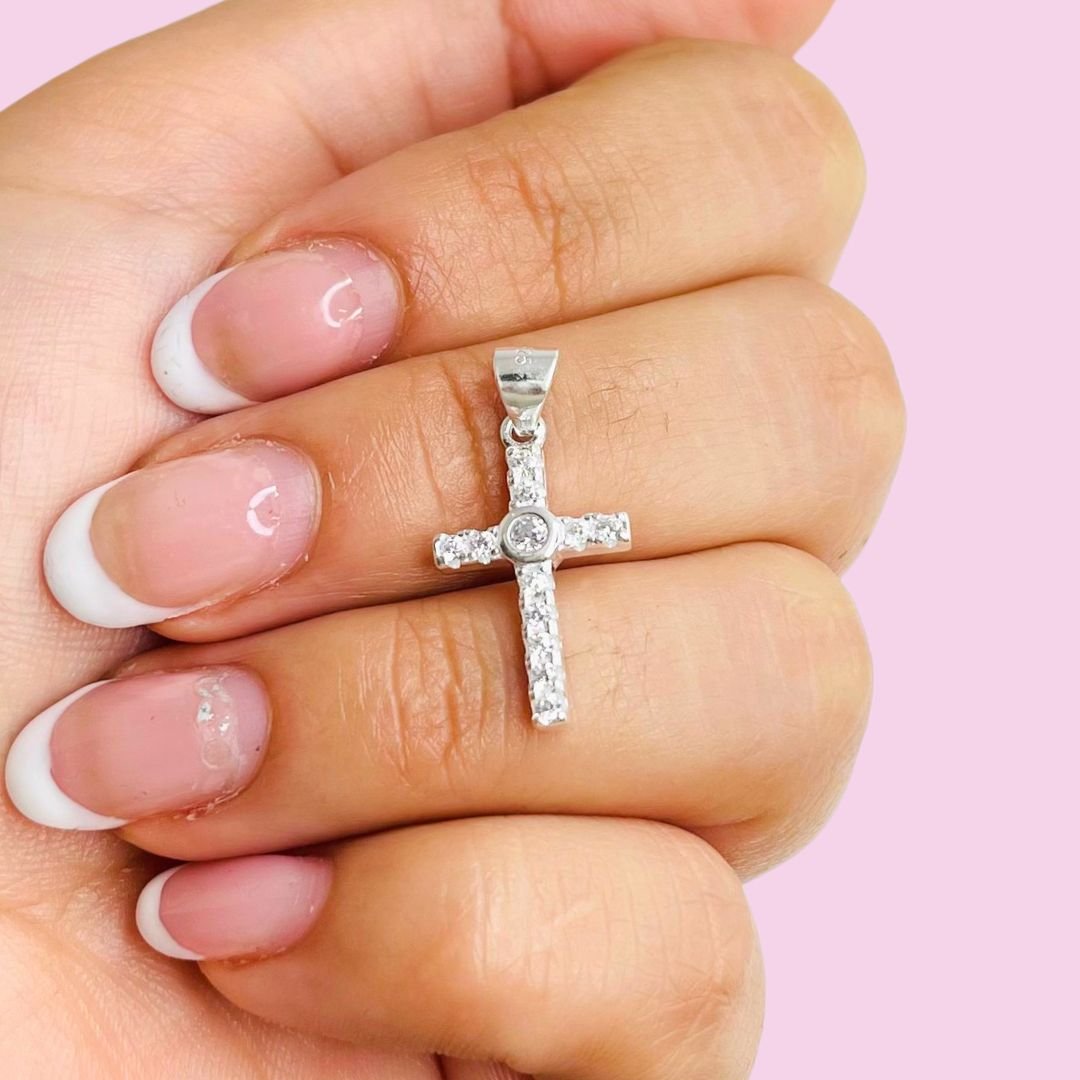 Dije Cruz con cubic 25mm Plata Italiana