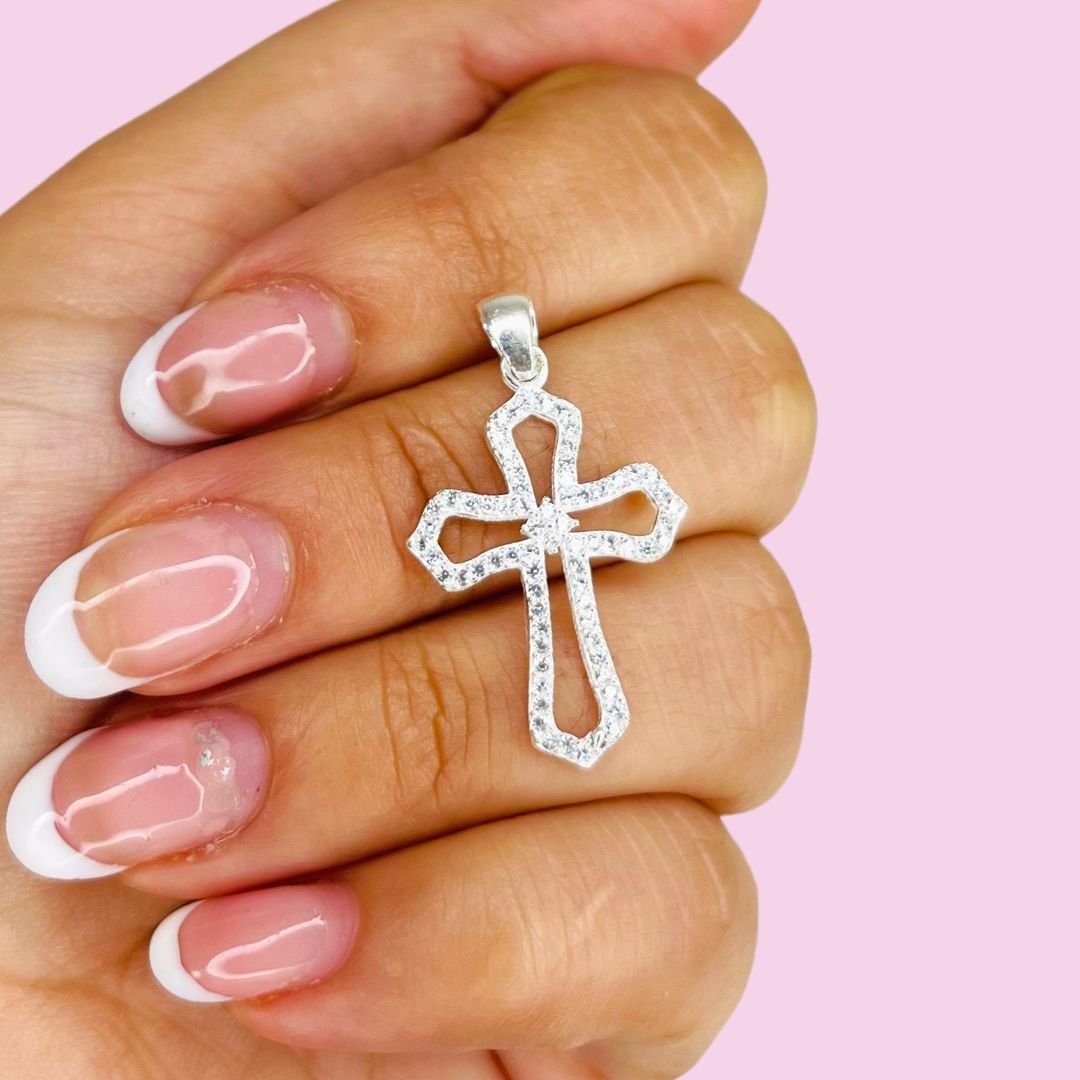 Artículo: D 837Dije Cruz calada con micropave Plata Italiana
