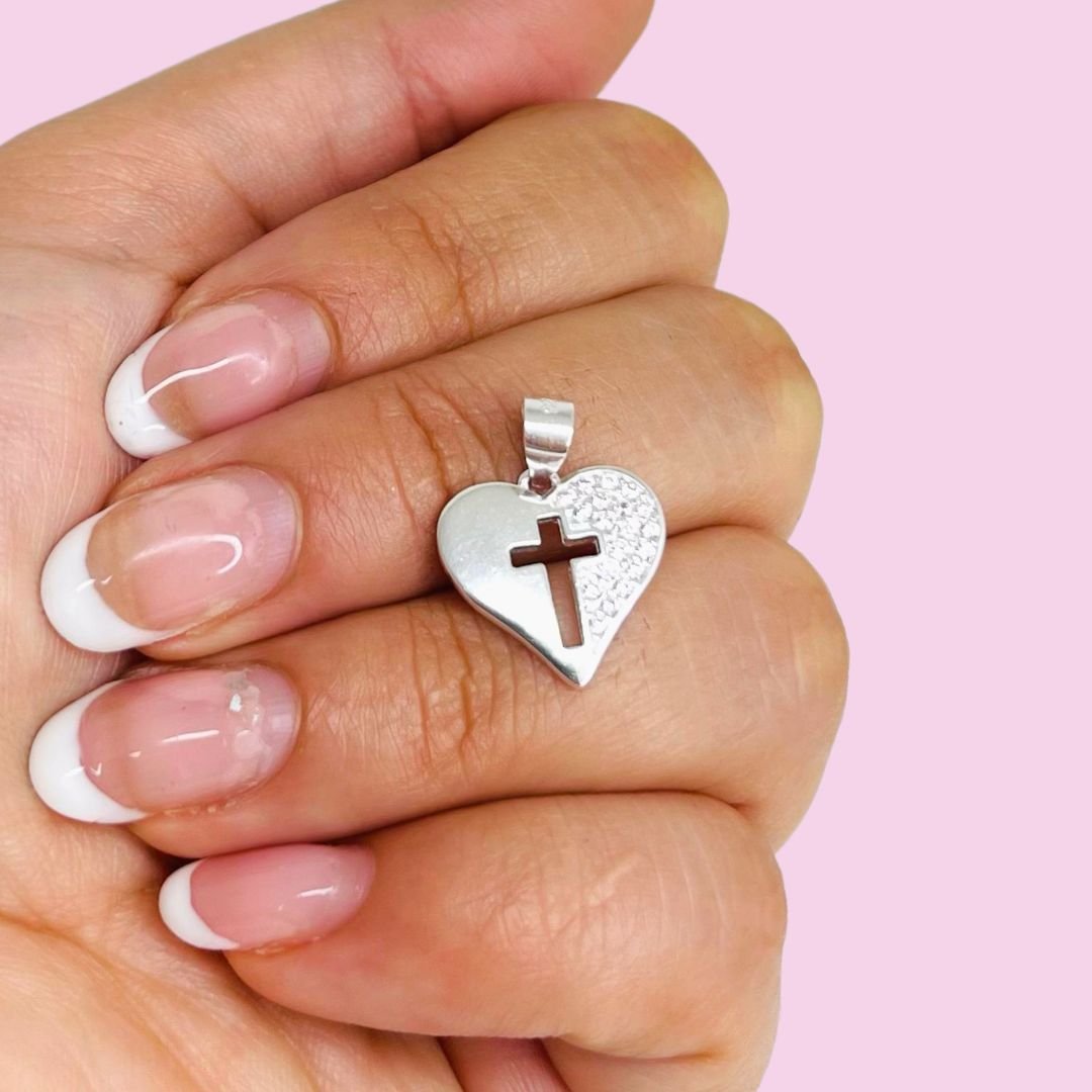 Dije Corazon con cruz y micropave Plata Italiana