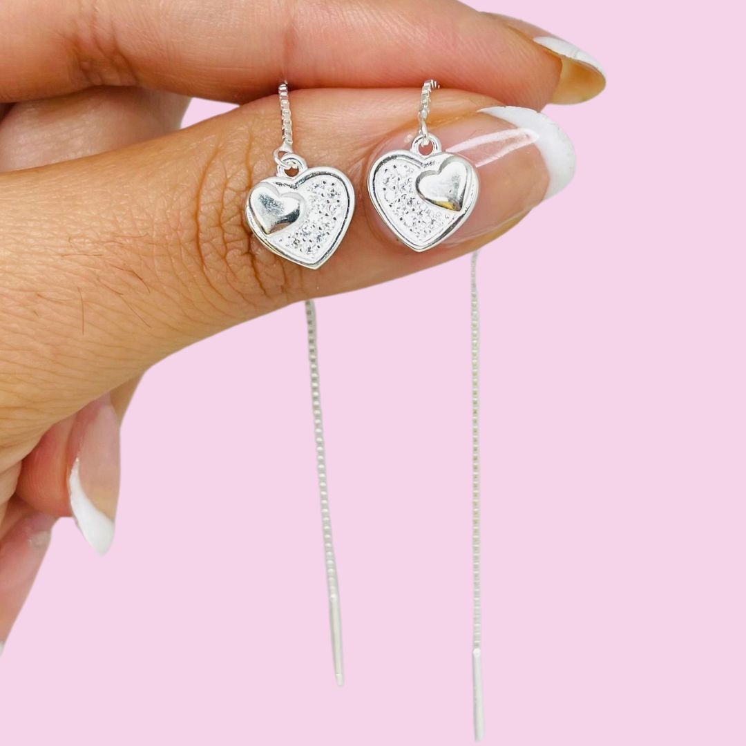 Artículo: AR 607Aros Corazon Colgantes con micropave Plata Italiana