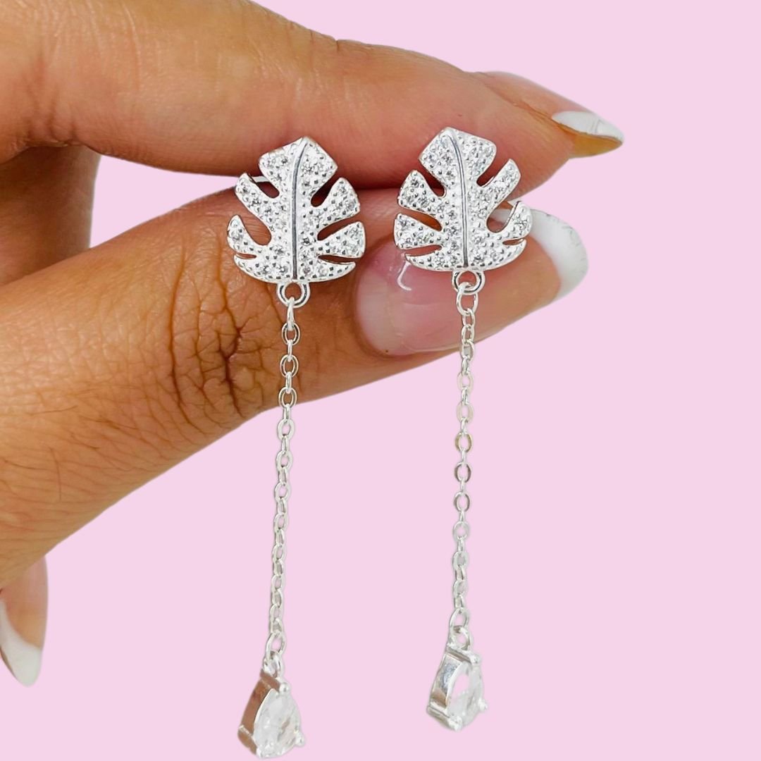 Artículo: AR 608Aros hoja de arbol con cubic Plata Italiana