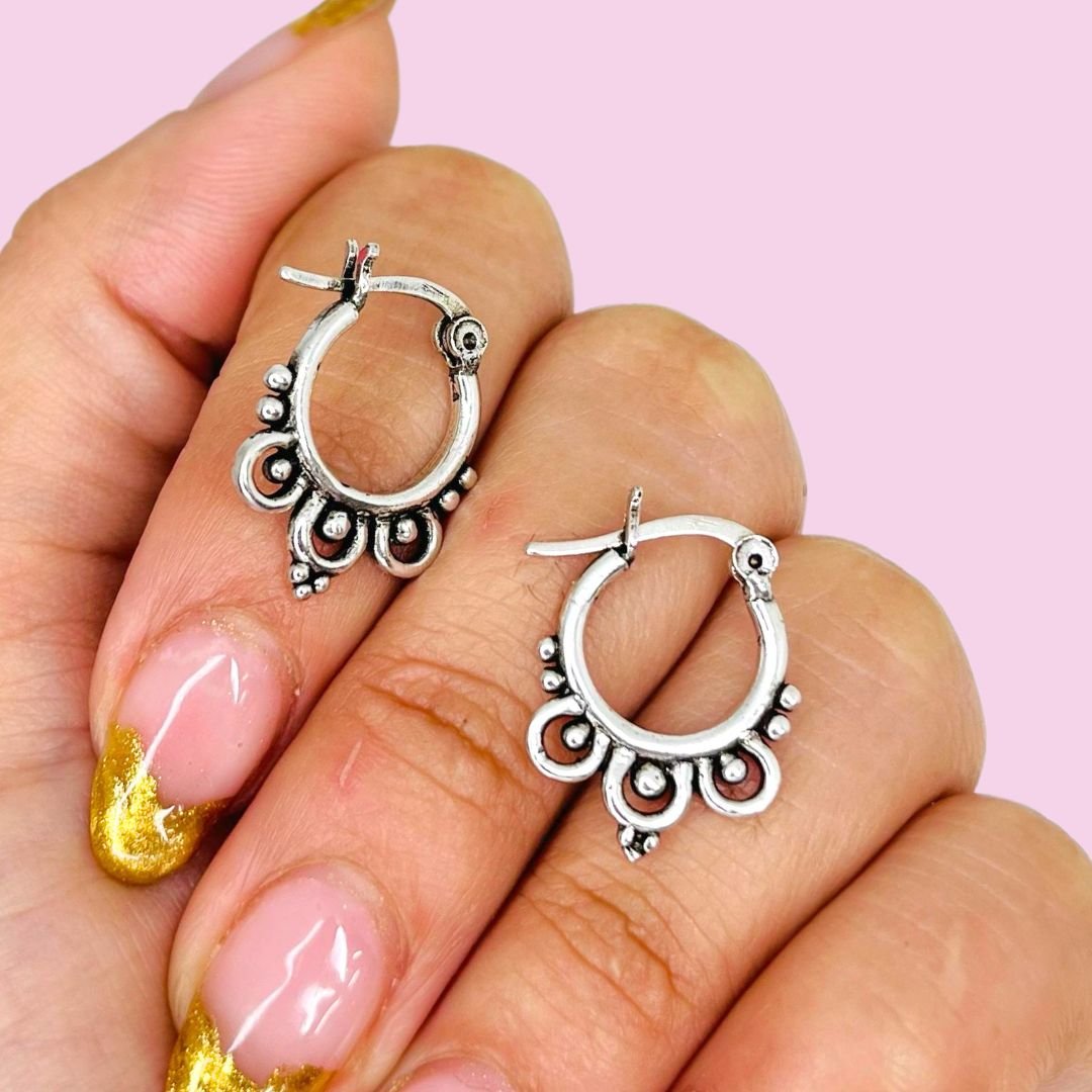 Artículo: AR 366-6Aros Bali media Mandala empavonado 20mm de plata 925