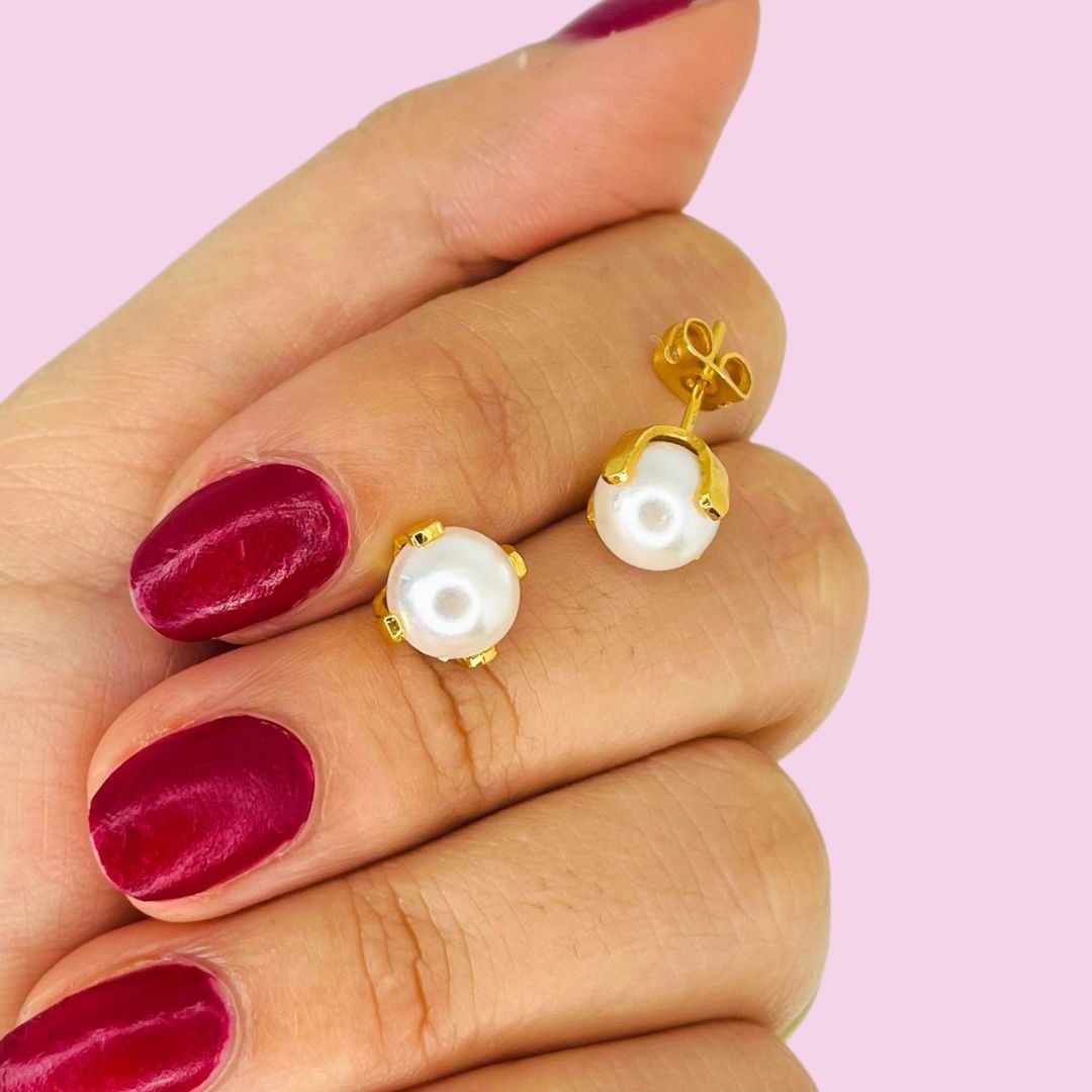 Artículo: AR 303-32Aros Perla engarzados de 8mm con baño de Oro