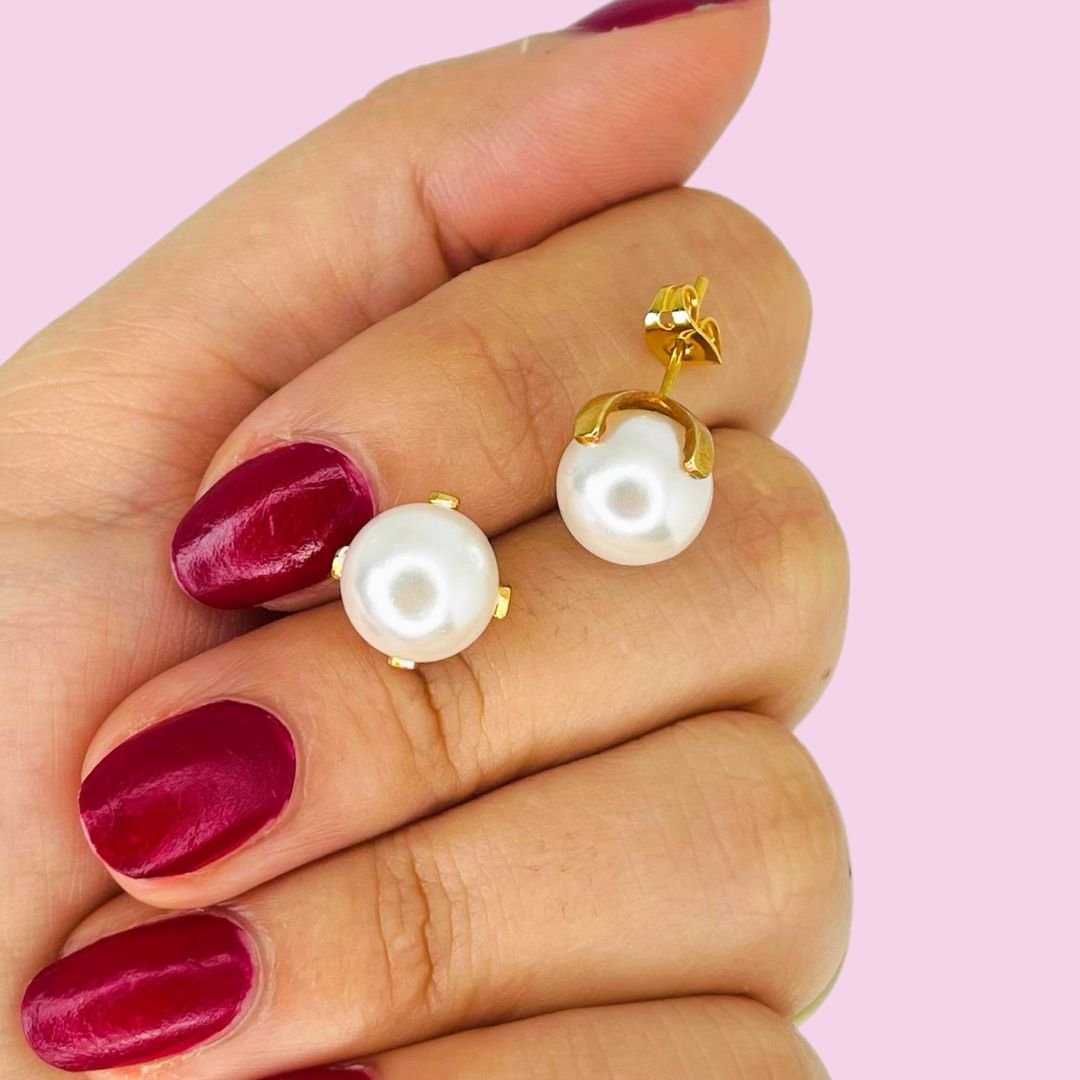 Aros Perla engarzados de 10mm con baño de Oro