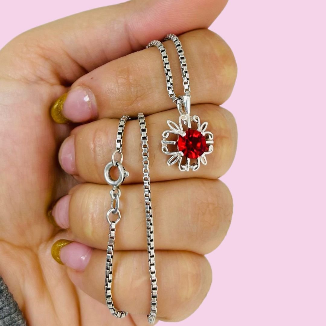 Conjunto Cadena con dije Shaira con cubic Rojo Plata 925