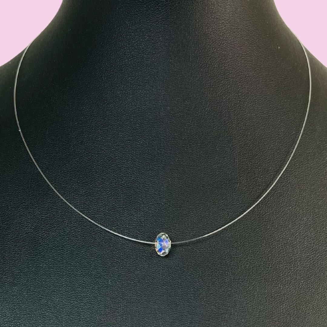 Artículo: CD 104-35Choker tanza invisble y dije Swarowski Blanco tornasol