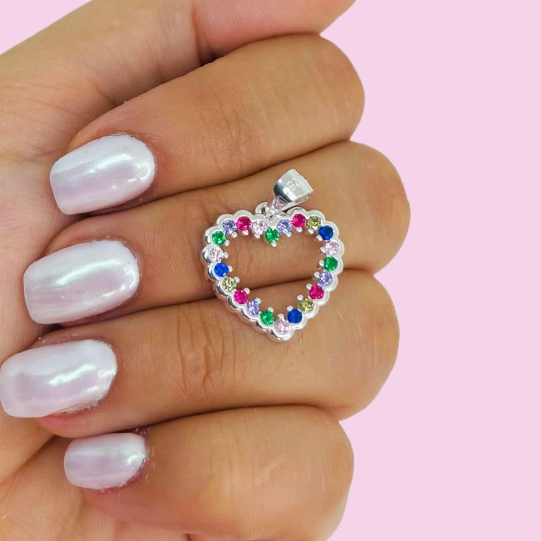 Artículo: D 848Dije Corazon Multicolor Plata Italiana