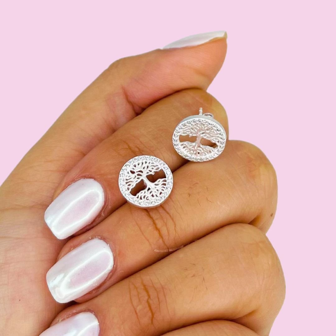Aros arbol de la vida con micropave Plata Italiana