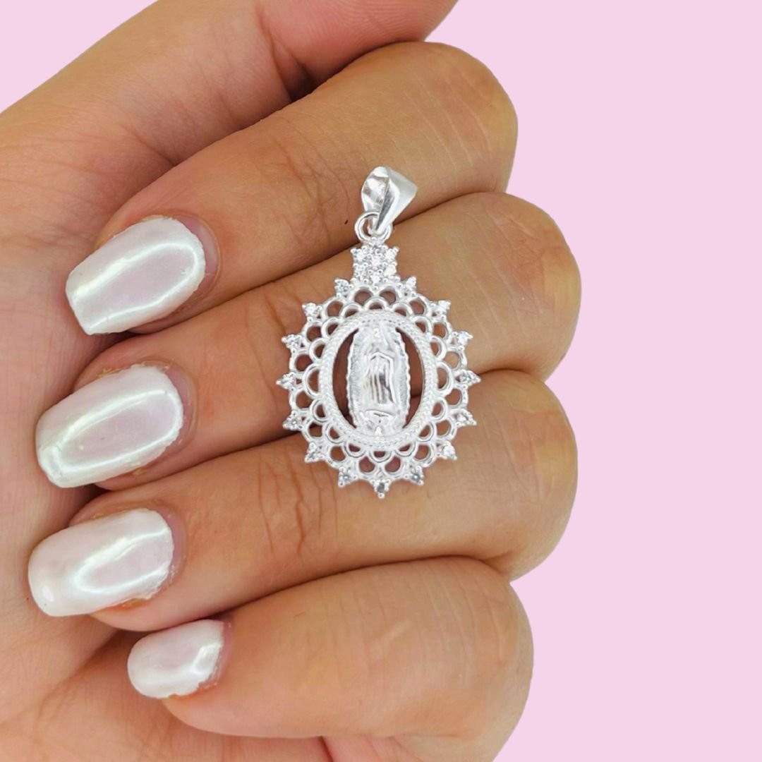 Dije Virgen de Guadalupe con cubic blanco Plata Italiana