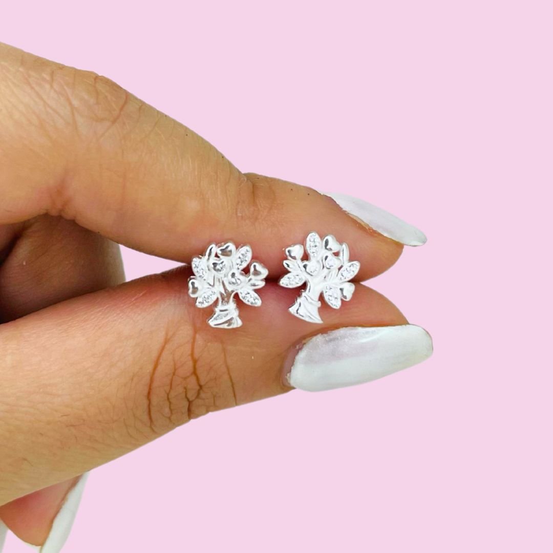 Aros Arbol de la vida con micropave Plata Italiana