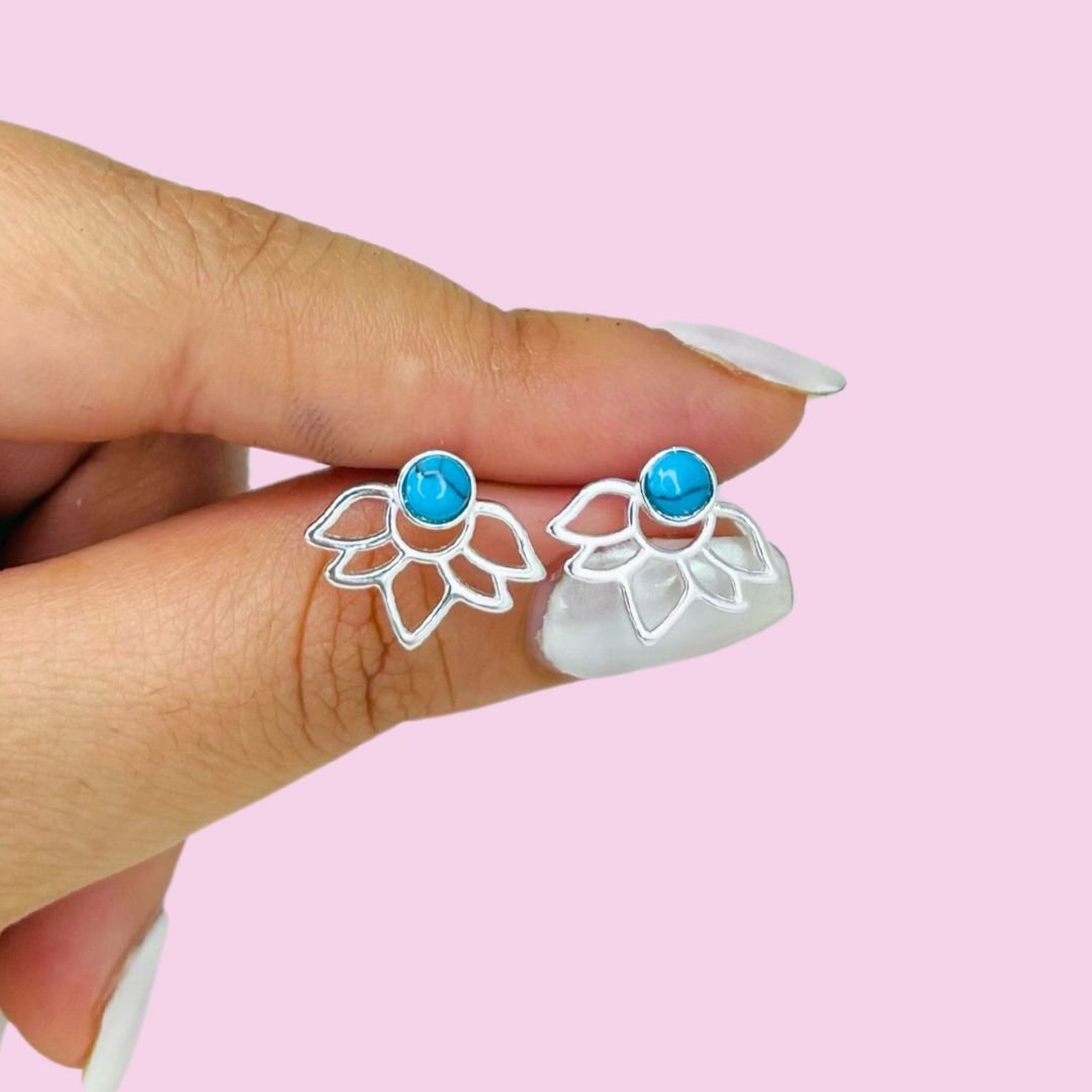 Artículo: AR 618Aros Hindu con piedra natural calaita Turquesa Plata Italiana