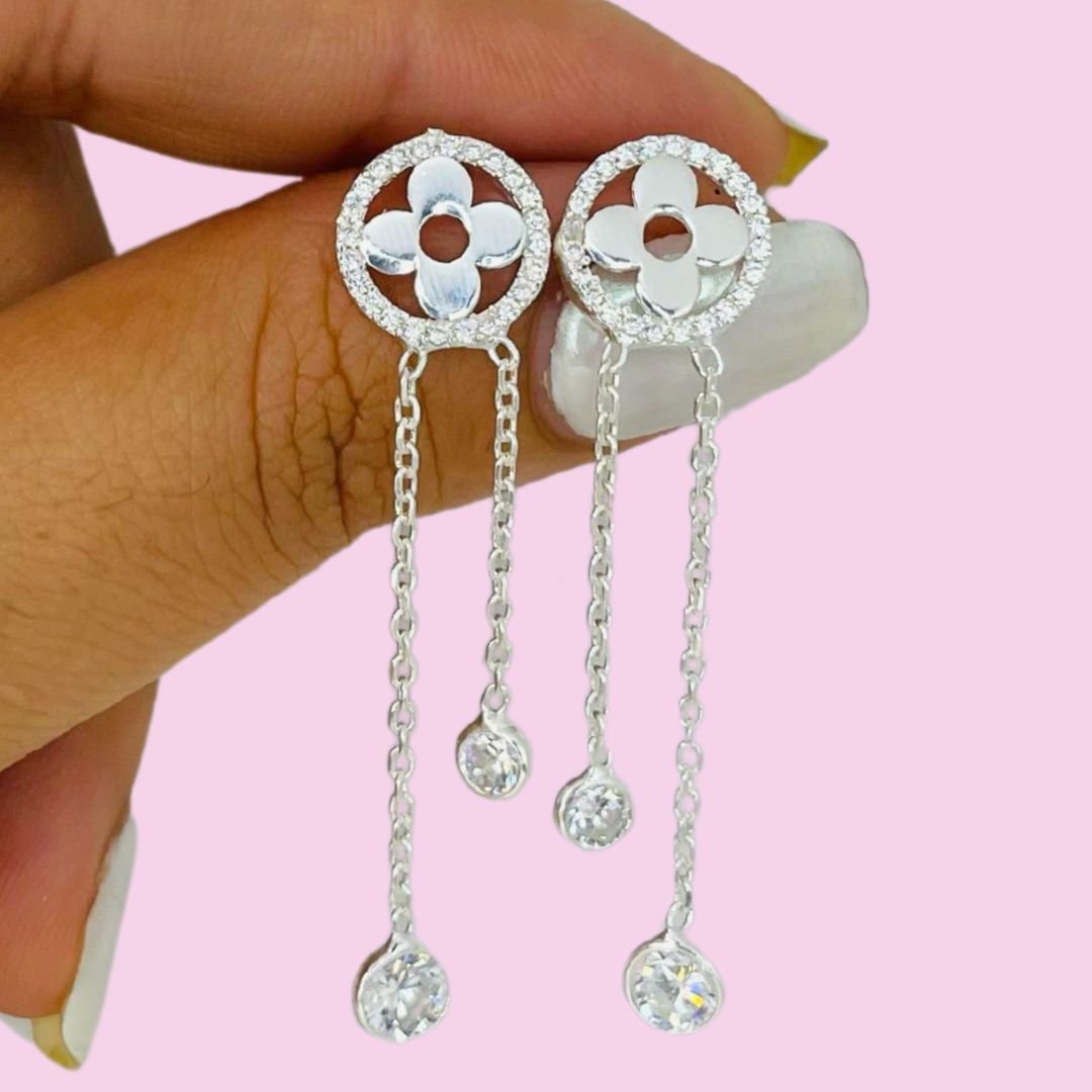 Artículo: AR 619Aros Van Cleef con cubic colgantes blanco Plata Italiana