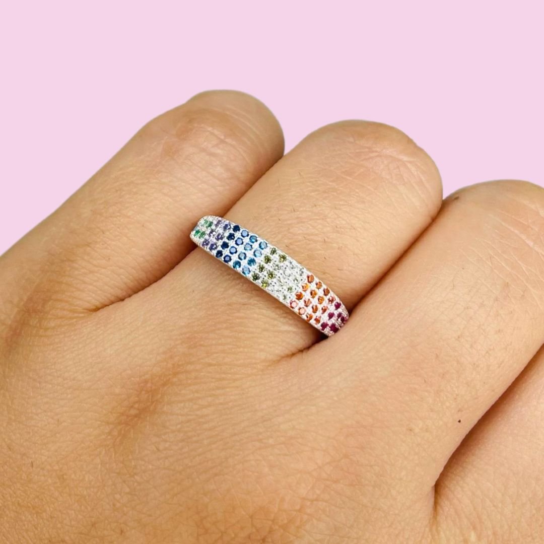 Anillo Multicolor de micropave Plata Italiana