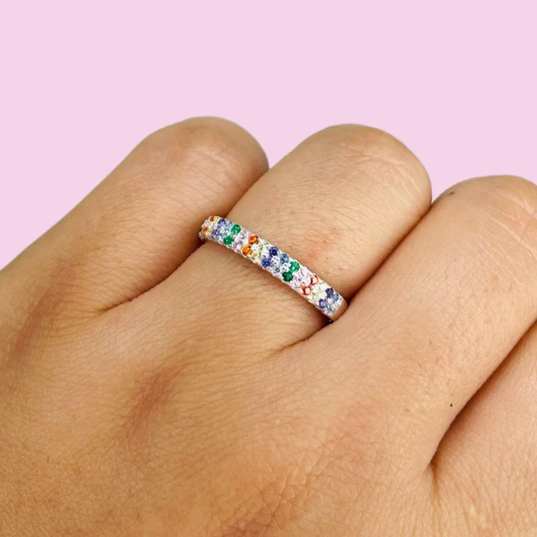 Anillo Multicolor con cubic Plata Italiana