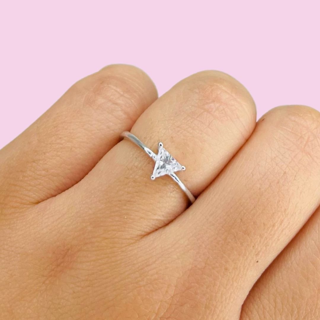 Anillo Cubic Triangulo Blanco Plata Italiana